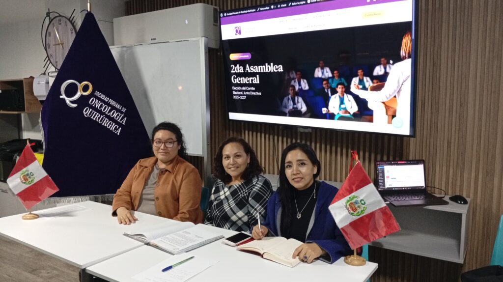Acta de Asamblea General Extraordinaria del 27 de octubre de 2025 Siendo las 8:15 p. m. del día 27 de octubre de 2025, en el local de la Sociedad Peruana de Oncología Quirúrgica, sito en Av. Angamos Este 2688, Surquillo, se reunieron en segunda convocatoria los integrantes de la SOCIEDAD PERUANA DE ONCOLOGÍA QUIRÚRGICA. Actuó